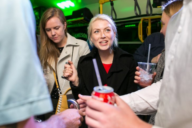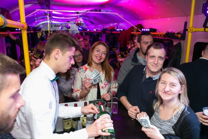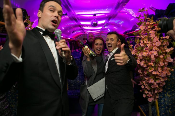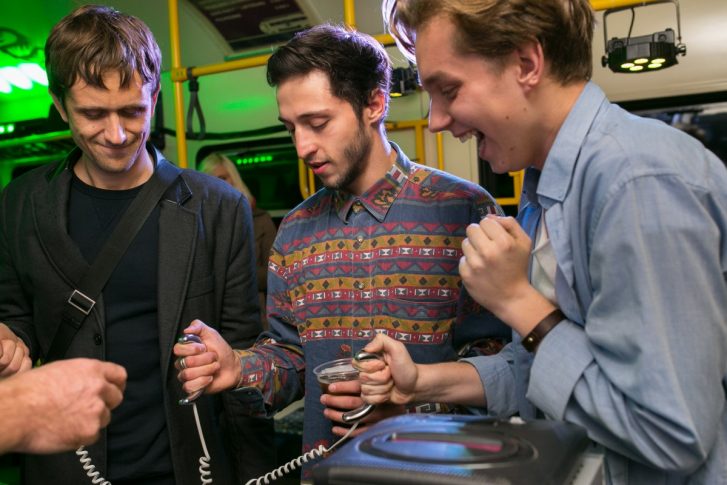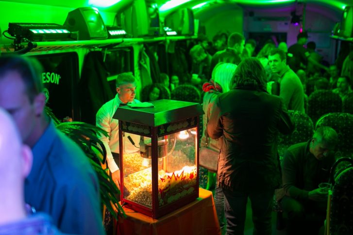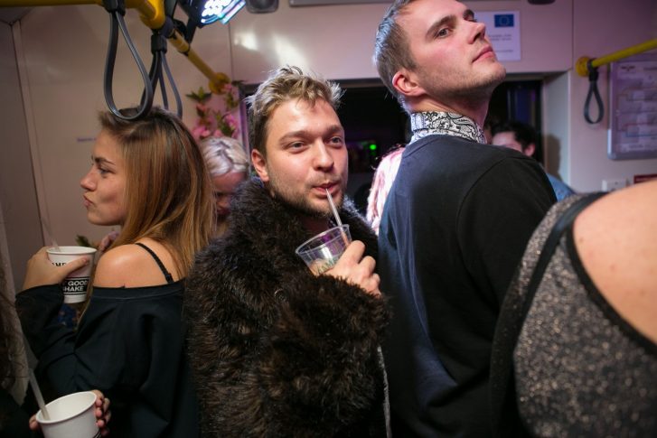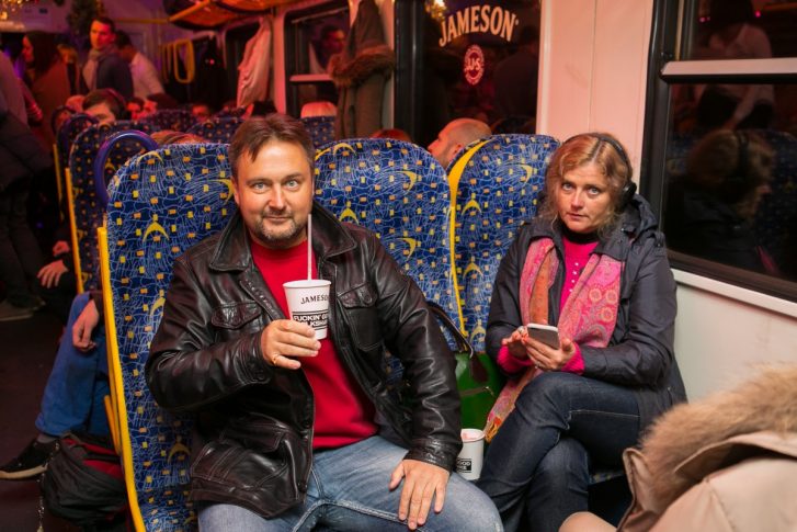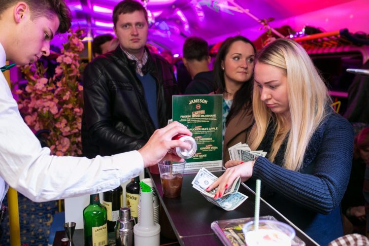 В каждом вагоне, разумеется, работал бар, где можно было заказать коктейли на основе Jameson, созданные специально для этой вечеринки и названные в соответствии с популярными цитатами из фильма — Fuckin’ good milkshake, Motherfucker Mia’s apple… Коктейли, к слову, не раздавали, а продавали. И не дешево: порция – 10 000 долларов. Правда, не американских, а джемисоновских, весомая пачка которых прилагалась к каждому приглашению. Поверьте, от жажды из-за нехватки средств не умер ни один гость.