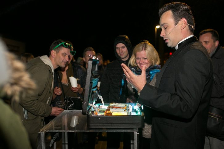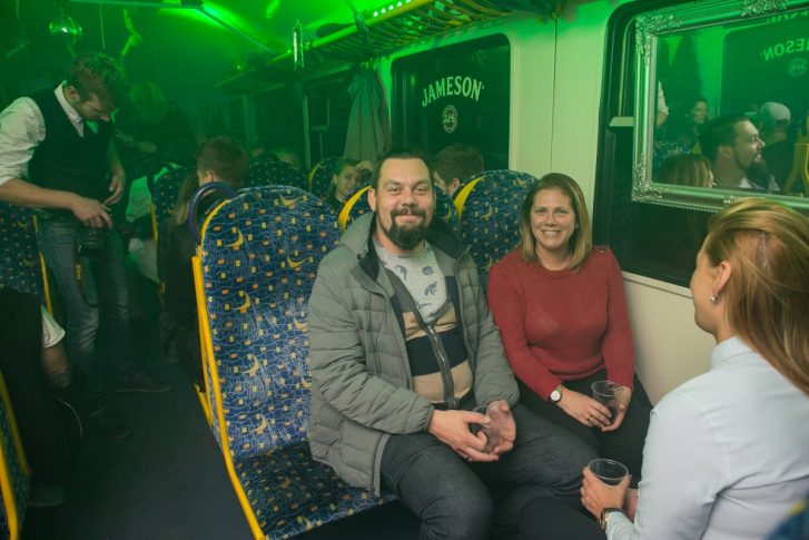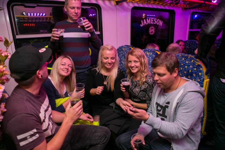 И вот Jameson Cult Film Club добрался до Риги: в один из осенних не очень солнечных дней любители киноискусства и, конечно же, поклонники ирландского виски были приглашены на вечеринку, обещавшую развлечения в стиле Квентина Тарантино. Его оскороносное «Криминальное чтиво» стало поводом и «главным героем» мероприятия. Чтобы гостей ничто не отвлекало от киноискусства, был арендован поезд, который и отправился в путь с Рижского вокзала до … Лубене. Каждый вагон поезда был выдержан в определенном стиле, соответствующим той или иной сцене фильма: в одном из вагонов для киноманов крутился легендарный фильм, в другом – слушали джаз, в третьем – расслаблялись, как в реальном ночном клубе… Создавать соответствующую атмосферу помогали актеры театра и кино.