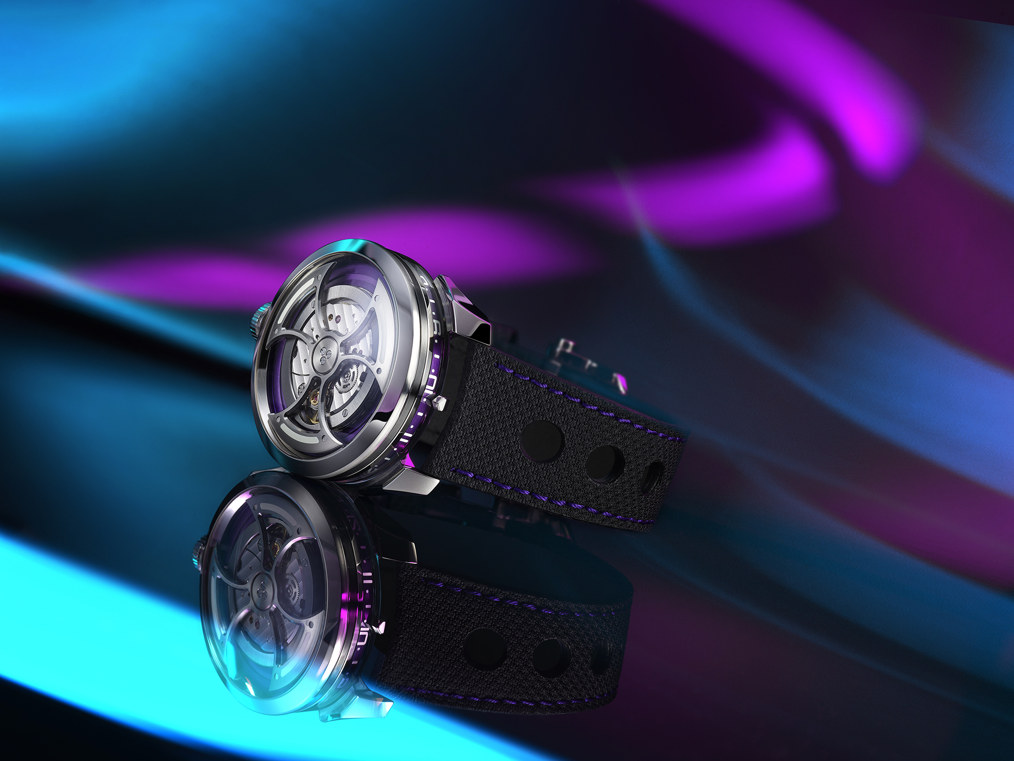 Сохраняя все ключевые концепты линии M.A.D.1, которые так полюбились ее поклонникам, M.A.D.1S предлагает и новые цветовые решения. Модель M.A.D.1S будет предложена «друзьям» (поставщикам) и «членам семьи» (коллекционерам MB&F) ограниченными сериями с индивидуальными лиловыми акцентами на циферблате. Для широкой публики, которая проявляет интерес к разным вариациям M.A.D.Editions, премьерная модель M.A.D.1S будет оформлена в светло-голубых тонах.