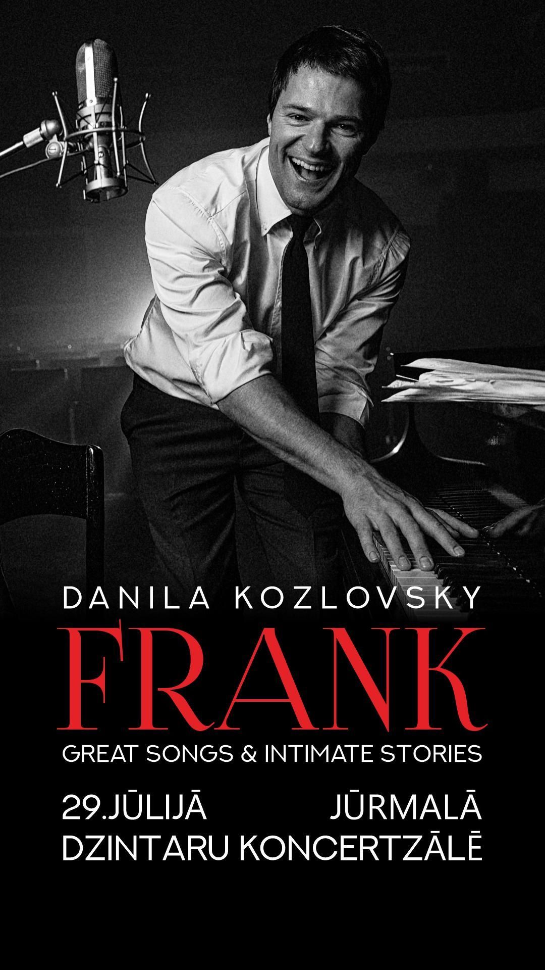 28 июля в концертном зале «Дзинтари» покажет свой музыкальный моноспектакль «FRANK. Great Songs & Intimate Stories» актер и певец Данила Козловский, покинувший Россию в знак несогласия с войной с Украиной. В названии зашифровано двойное послание: с одной стороны, это имя любимого певца Данилы, Фрэнка Синатры, песни которого будут исполнены в рамках шоу. С другой стороны, слово frank переводится с английского как «откровенный», «искренний», «честный». И в этот вечер Данила Козловский не только споет, но и расскажет о себе много личного.